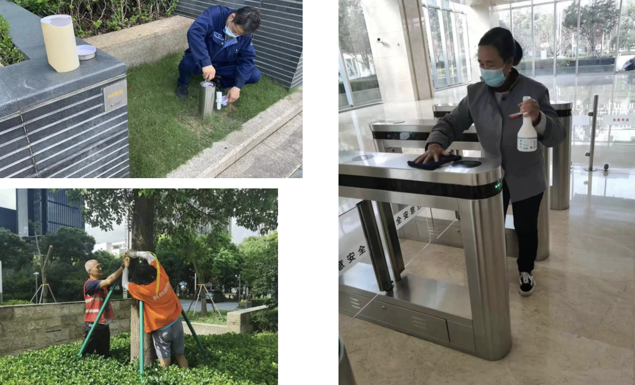 在入驻装修方面,给予业主全方位的指导,配合业主完成消防安监报备、装修开工许可等一系列流程,确保业主少走弯路,安全施工,顺利入驻。 针对报修诉求,物业维修人员及时到场查明原因,给出解决方案及建议,在物业维保力所能及的范围内,予以妥善处理,确保业主正常营业和运作。 垃圾分类,是“关键小事”,也是“民生大事”。针对入驻的餐饮企业,由商户与浦东新区废弃物管理中心签订合同,对餐厨垃圾等进行统一处理。针对写字楼入驻企业,每个楼层设有两个干湿垃圾分类箱,广场一侧垃圾分类站点每天三个时间段开放(10:00-10:30、15:00-15:30、17:00-17:30),日均产生干垃圾60桶、湿垃圾20桶。针对个别未进行垃圾分类的情况,客服人员及时联系业主企业相关行政人员,予以劝导,督促做好源头分类工作,提升分类准确率,推动垃圾分类从新时尚成为好习惯。 作为一家国企,客服中心也主动扛起国企担当,践行社会责任,配合政府工作,积极参加属地街道举办的各类志愿服务及公益活动。疫情期间,设立新冠疫苗临时接种点,为方便市民接种、筑牢免疫屏障贡献力量。