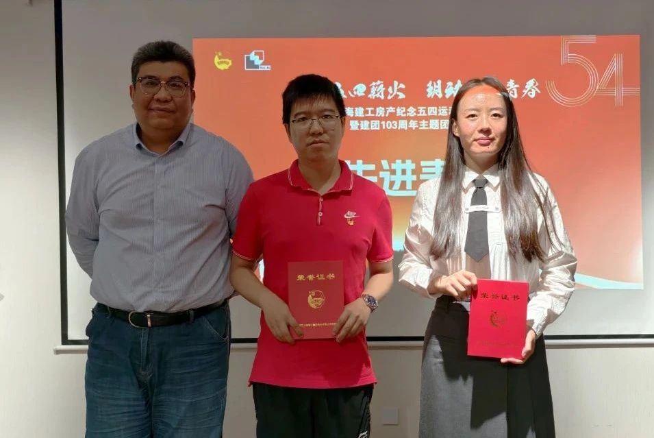 会上还宣布了有关表彰名单,号召房产青年对标榜样,立足岗位,奋发有为,再立新功。王祺国、朱立、刘征宇分别为获得集团第三十四届“十佳杰出青年——期望奖”提名奖、“集团新长征突击手”“优秀项目团支部书记”“全国化青年先锋”提名奖、“十佳优秀团干部”提名奖的青年颁奖。